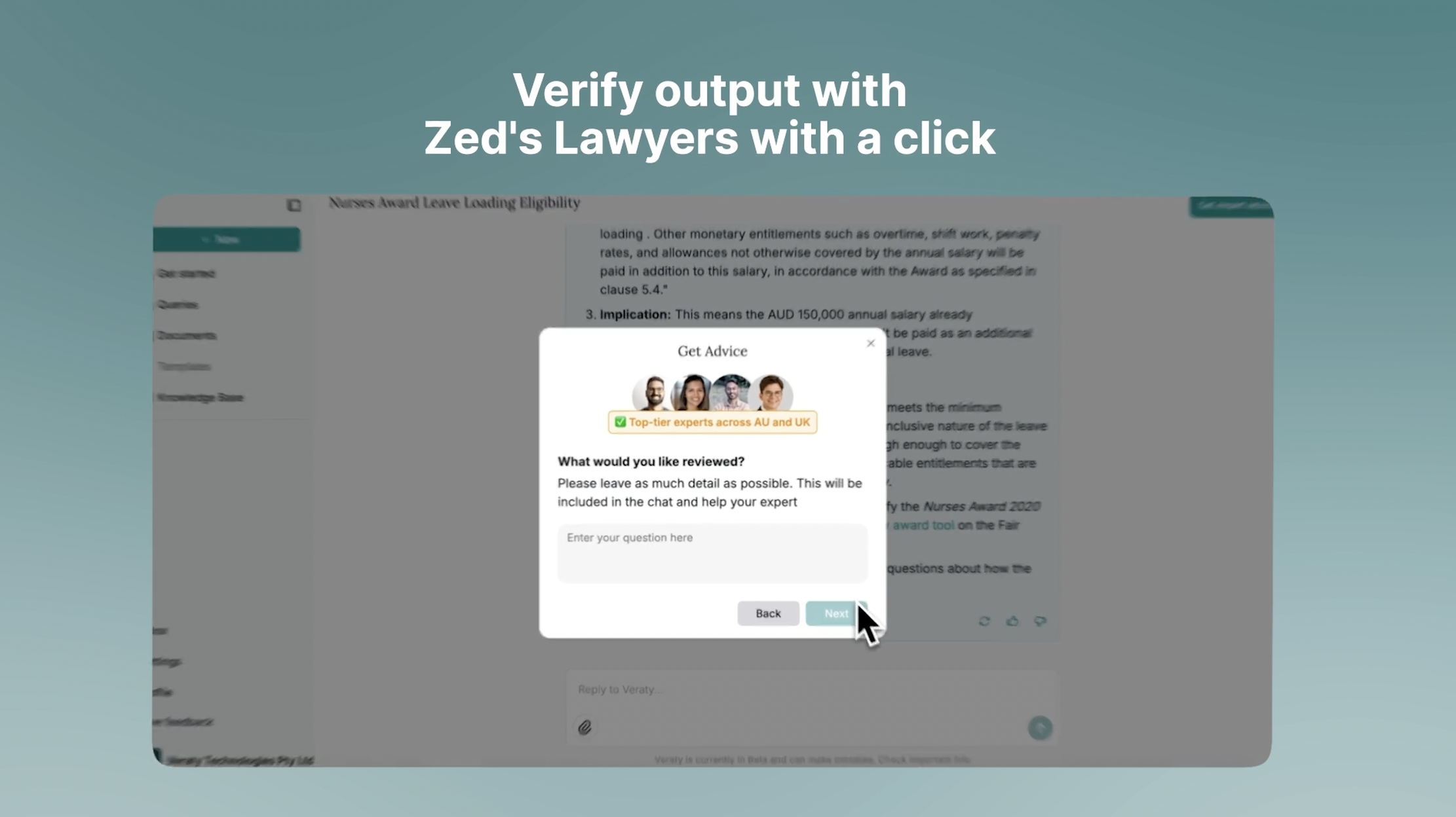 Veraty is the legal AI platform that businesses trust to get instant legal support, with the backing and support of a dedicated law firm. experience zed+ for AI-powered document creation, contract review and expert advice.